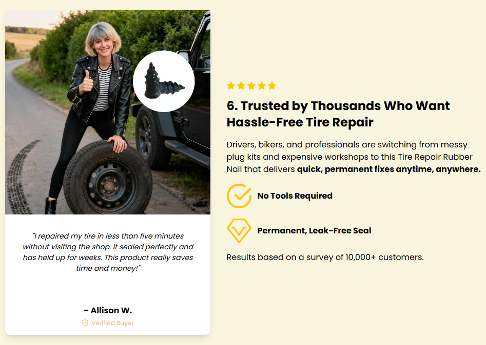 🚗 TIRE REPAIR RUBBER NAILS KIT – Permanent, Watertight Seal for Nails/Screws Without Jacking Up Your Car!💪