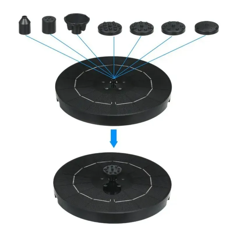 "This little solar water fountain is so easy so assemble! Just snap a few pieces together and make sure to places in direct sunlight. I placed it inside a medium size planter and it works great."