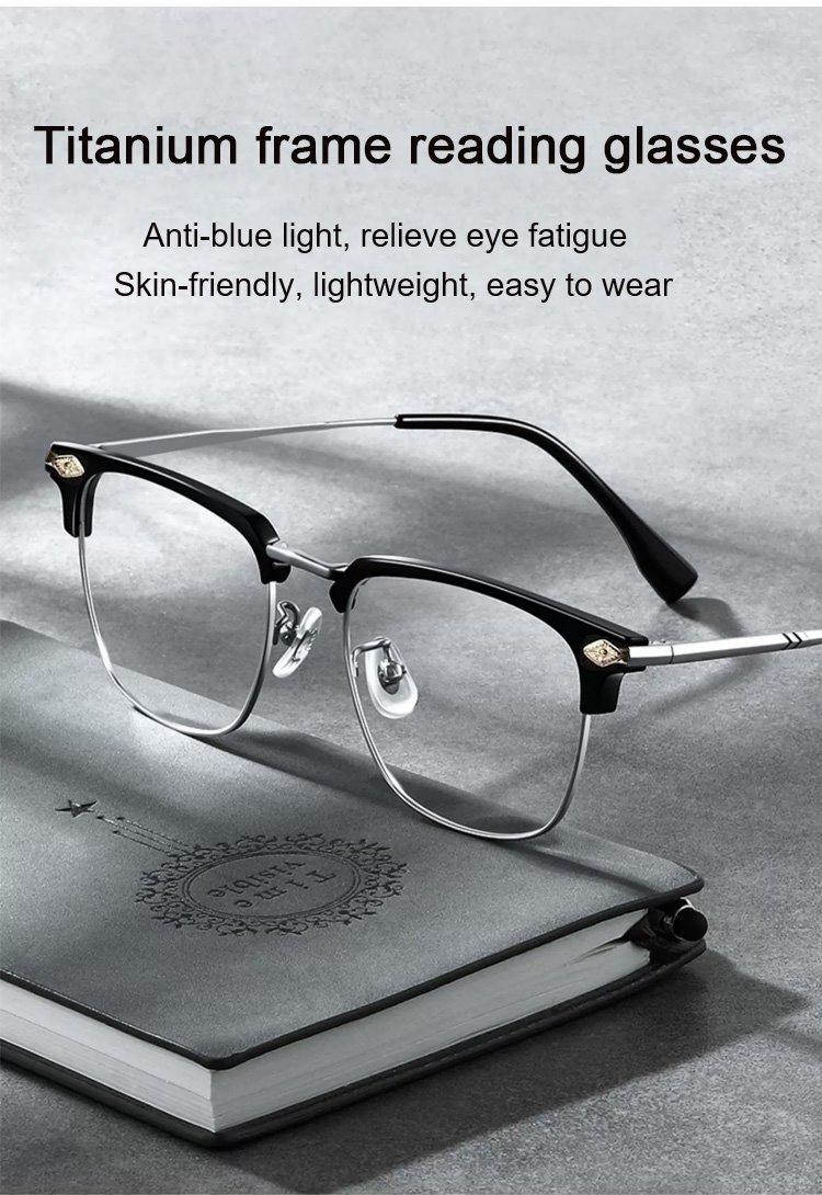 Titanium frame reading glasses. Anti-blue light, relieve eye fatigue Skin-friendly, lightweight, easy to wear