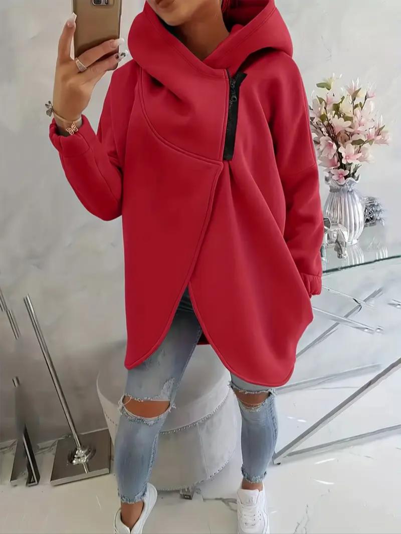 【Asymmetrical Hem】: The asymmetrical bottom hem with slits adds a modern touch, setting this hoodie apart from conventional styles.